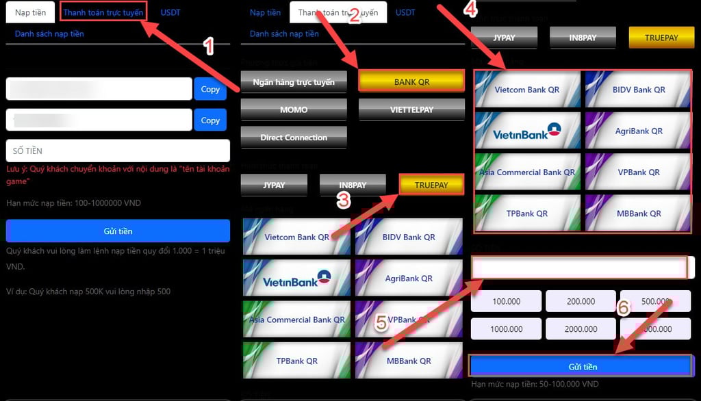 ✅ Hỗ trợ đa phương thức thanh toán, linh hoạt cho người chơi.