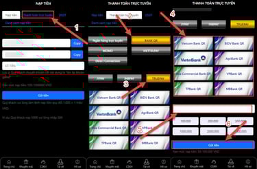 Nhập số tiền cần nạp, chọn ngân hàng/ví điện tử phù hợp, sau đó thực hiện chuyển khoản theo thông tin hệ thống cung cấp.